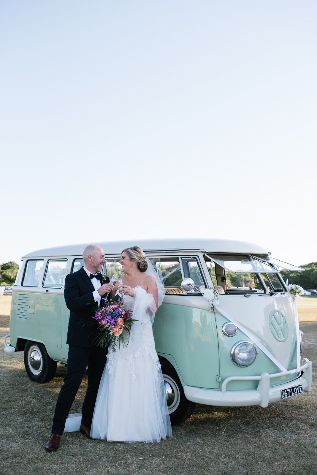 into a time capsule of class and nostalgia. A kombi hire Byron Bay mix is a must. Everyone says love is not a smooth ride but a wedding like this will be the best start to a romantic adventure,